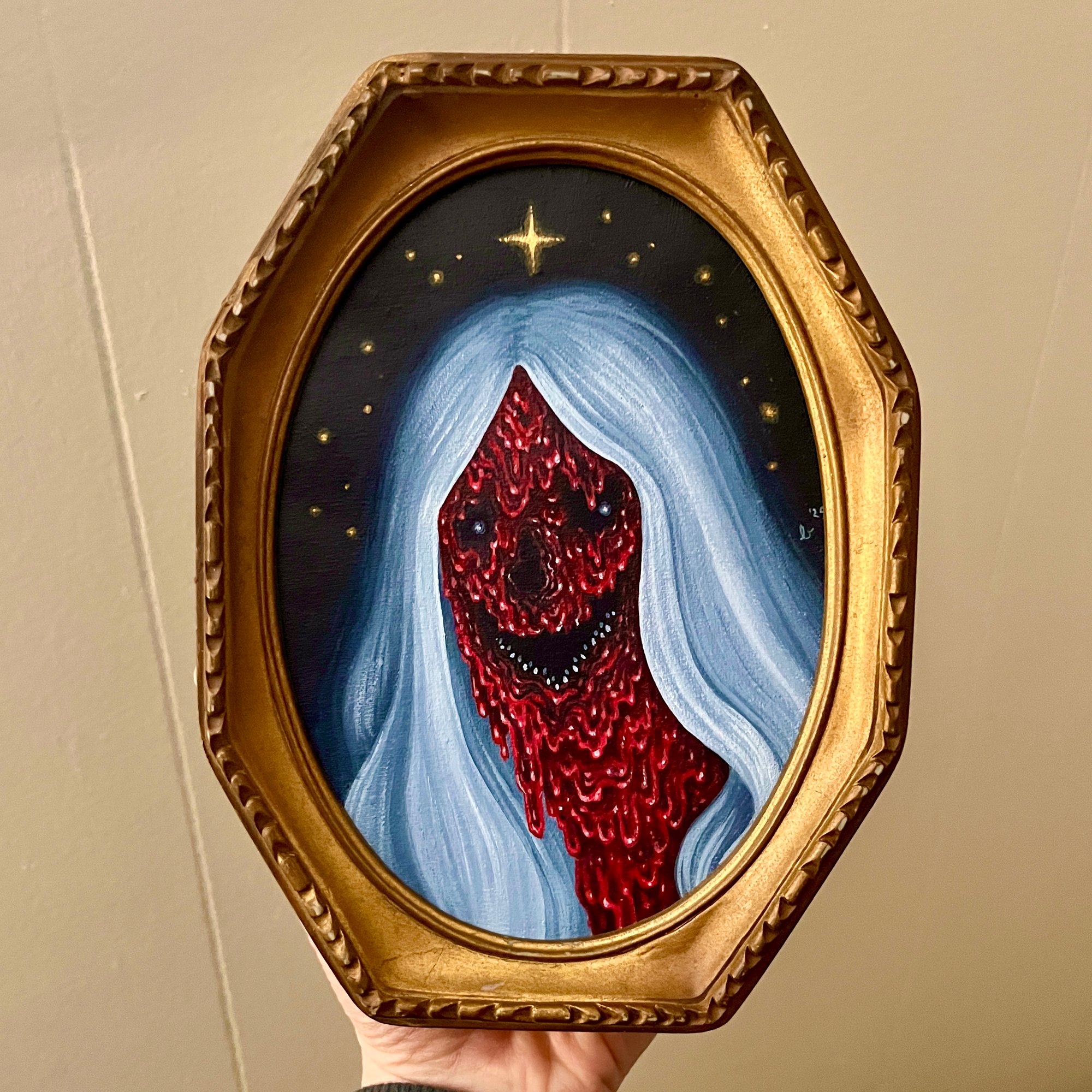 acrylics on canvas paper in vintage wooden frame. measures about 6x8 inches. 2025.
