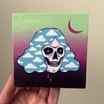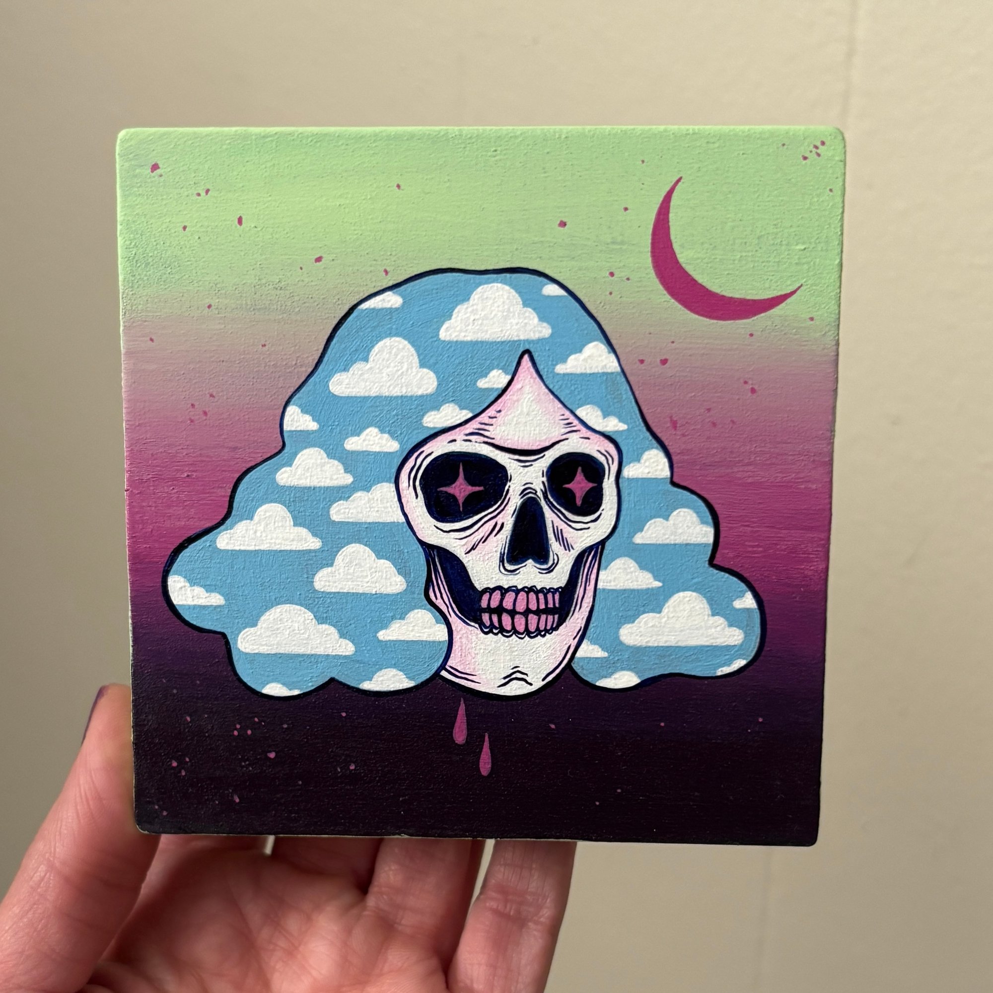 2 - head in the clouds skull study. acrylics on cradled wooden panel